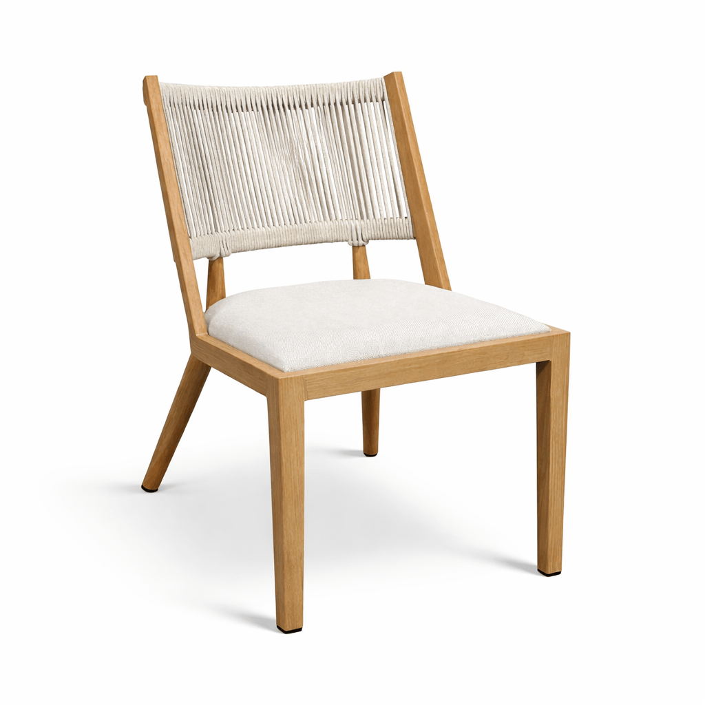 This newly launched aluminum cafe chair with cushion is designed for modern outdoor living, combining comfort, durability, and a natural wood-look aesthetic. Featuring a wide, gently curved woven backrest, it provides ergonomic support and a relaxed seating experience, making it ideal for cafes, restaurants, and patio environments.