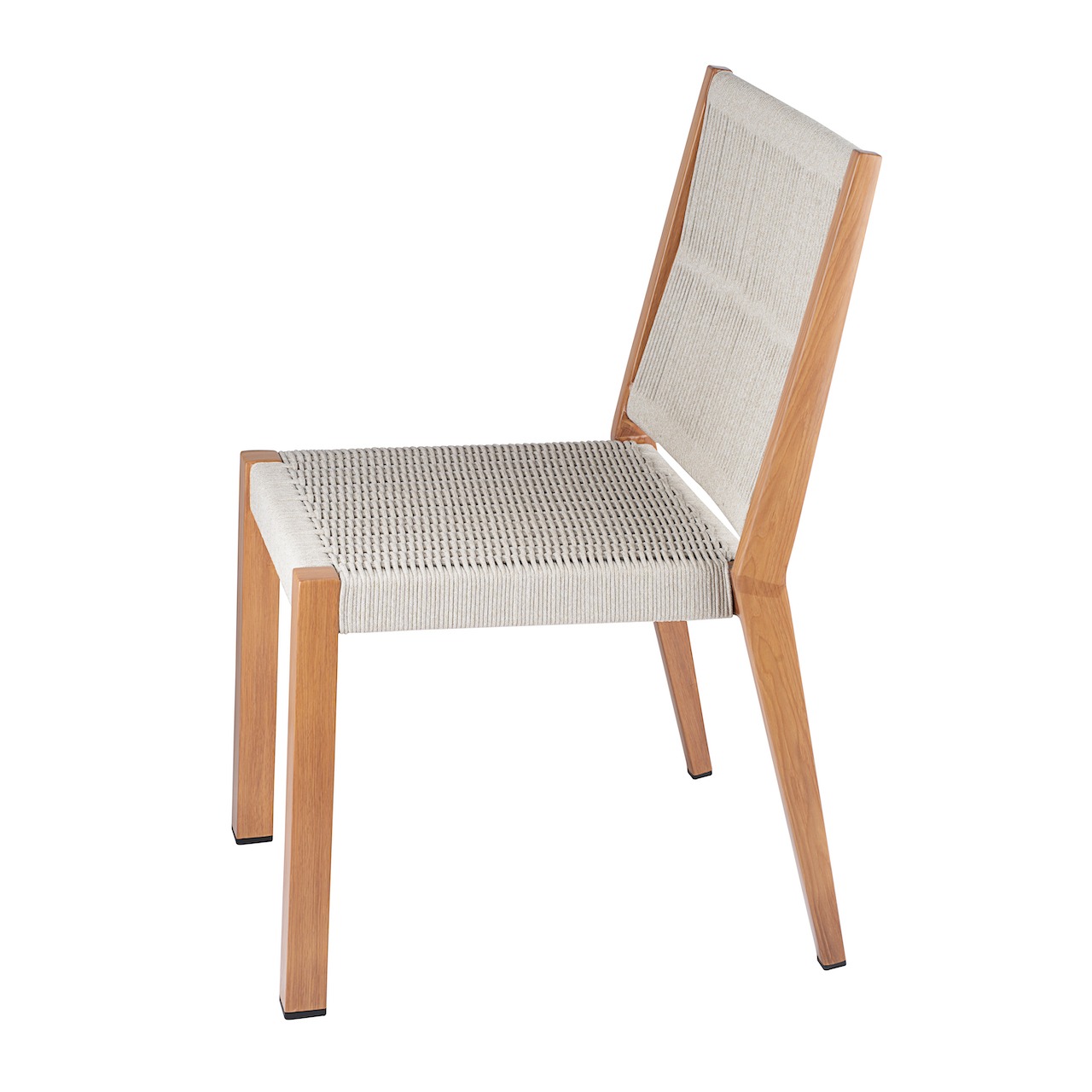 Introducing our newly launched wood rope chair for restaurant, crafted to bring both style and durability to modern outdoor dining spaces. Featuring a fully welded aluminum frame and handwoven wood rope seat, this chair combines lightweight practicality with commercial-grade strength. The curved design of the backrest ensures exceptional comfort, while the natural wood rope texture adds a sophisticated, inviting look. Built with weather-resistant materials, this wood rope chair for restaurant withstands daily use, moisture, and fading, making it ideal for busy cafés, patios, and restaurant terraces. Whether furnishing a casual bistro or a high-traffic dining area, this new wood rope chair for restaurant delivers lasting performance and contemporary style, making it a standout addition to any outdoor collection.