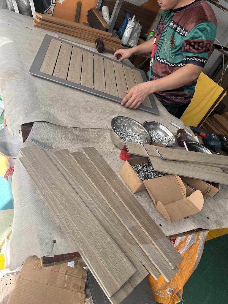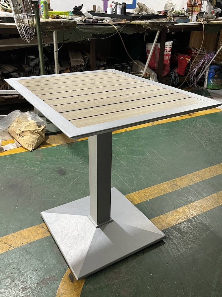 Silver powder-coated aluminum frame paired with a light wood frame, aluminum-wood slats for durability and timeless style. - Commercial-Grade Durability