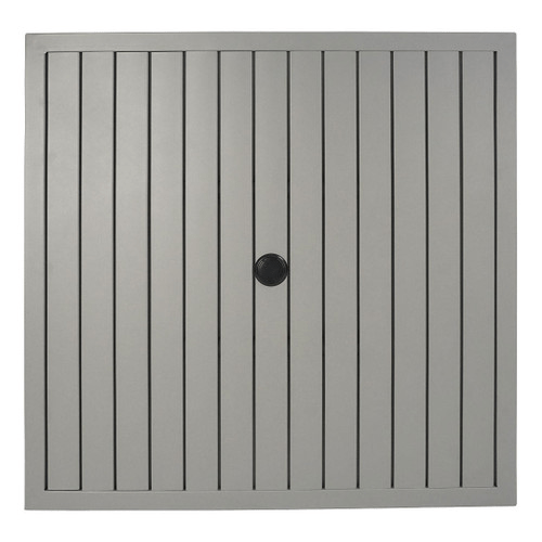 This cafe table top is crafted with slatted aluminum pieces and frame, ideal for high traffic outdoor spaces.